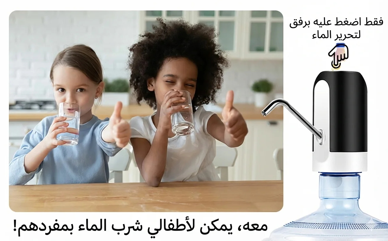 مضخة الماء الكهربائية تمنحك حلاً بسيطًا وفعّالًا لاستخدام قوارير المياه الكبيرة بسهولة تامة ومن دون أي مجهود، فقط بضغطة زر واحدة.